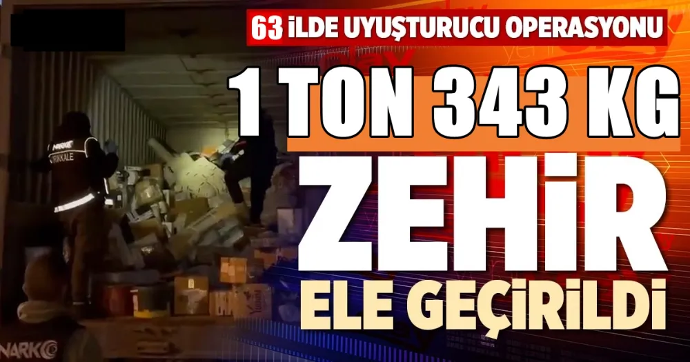 İçişleri Bakanı Ali Yerlikaya, 2 haftada 63 ilde uyuşturucu madde satıcılarına yönelik düzenlenen operasyonlarda, 424 şüphelinin yakalandığını bildirdi. Operasyonlarda 1 ton 343 kilogram uyuşturucu madde ile 178 bin 615 uyuşturucu hap ele geçirildi.