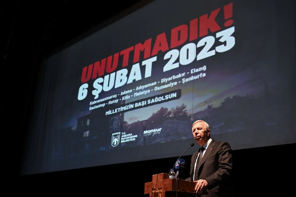 Ankara Büyükşehir Belediyesi (ABB), 6 Şubat 2023 Kahramanmaraş merkezli depremlerin yıl dönümü dolayısıyla anma programı düzenledi. Gençlik Parkı Büyük Tiyatro’daki programa, Ankara Büyükşehir Belediye Başkanı Mansur Yavaş ve eşi Nursen Yavaş’ın yanı sıra belediye bürokratları, akademisyenler, sivil toplum kuruluşu temsilcileri ve depremzede aileler katıldı.