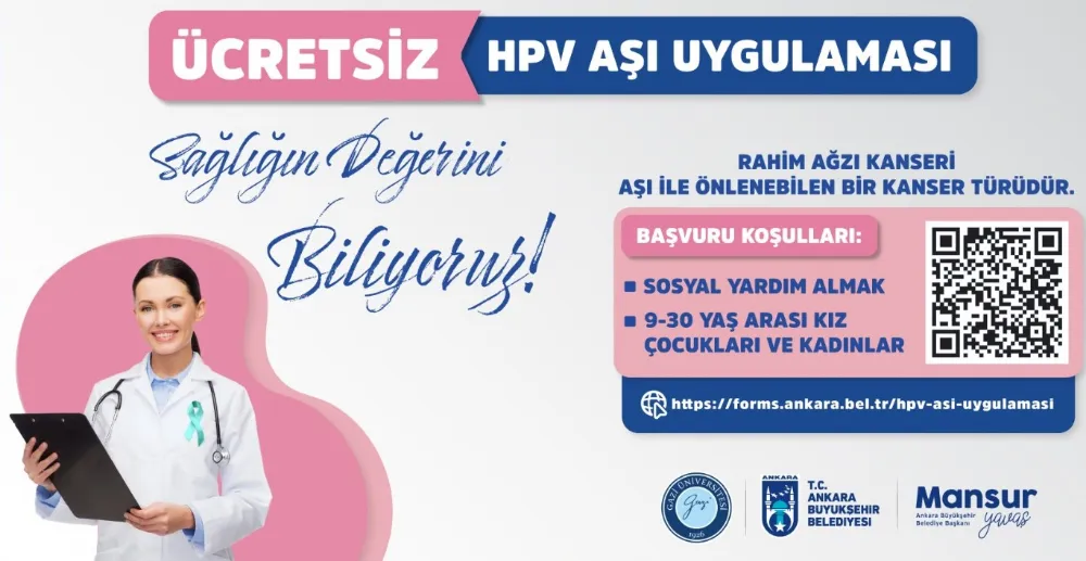 · Başvurular 30 Nisan 2026 tarihine kadar afişteki QR kod veyahttps://forms.ankara.bel.tr/hpv-asi-uygulamasi linki üzerinden yapılacak.