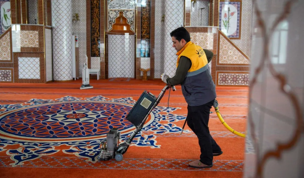 Ramazan ayına hazırlık amacıyla hızlandırılan çalışmalar çerçevesinde ibadethanelerde profesyonel ekipmanlar ve özel araçlarla halı temizleme işlemleri yapılırken, namaz kılınan alanlar özenle temizleniyor. Ayrıca kapı ve camlar siliniyor, ayakkabılıklar hijyen kurallarına uygun şekilde dezenfekte edilerek kullanıma hazır hale getiriliyor. Yürütülen çalışmaların Ramazan ayı boyunca da rutin program dâhilinde sürdürülecek.