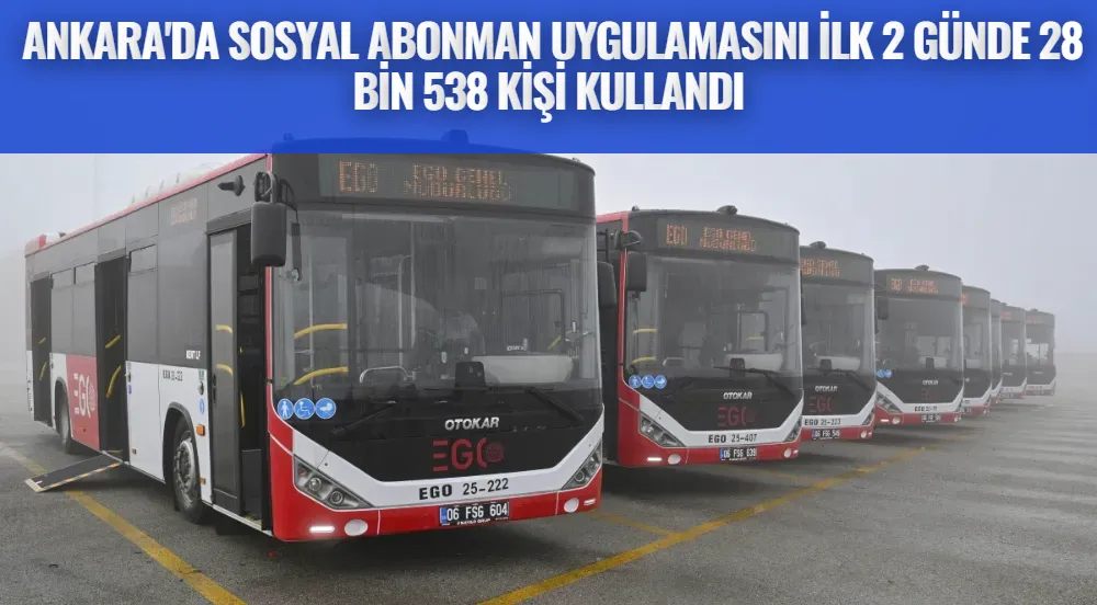 EGO Genel Müdürlüğü verilerine göre, 1–2 Şubat 2026 tarihleri arasında Sosyal Abonman kapsamında yapılan binişlerin; 21 bin 152’si EGO otobüslerinde, 4 bin 964’ü metro hatlarında, 1143’ü ANKARAY’da ve 1279’u ise Başkentray hatlarında gerçekleşti.