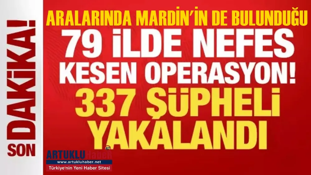 içişleri Bakanlığı aralarında Mardin'in de bulunduğu 79 ilde nefes kesen bir operasyonun gerçekleştirildiğini duyurdu. Bakanlıktan yapılan açıklamada, "Operasyonlarda 337 şüpheli hakkında işlem yapıldığı bildirildi.