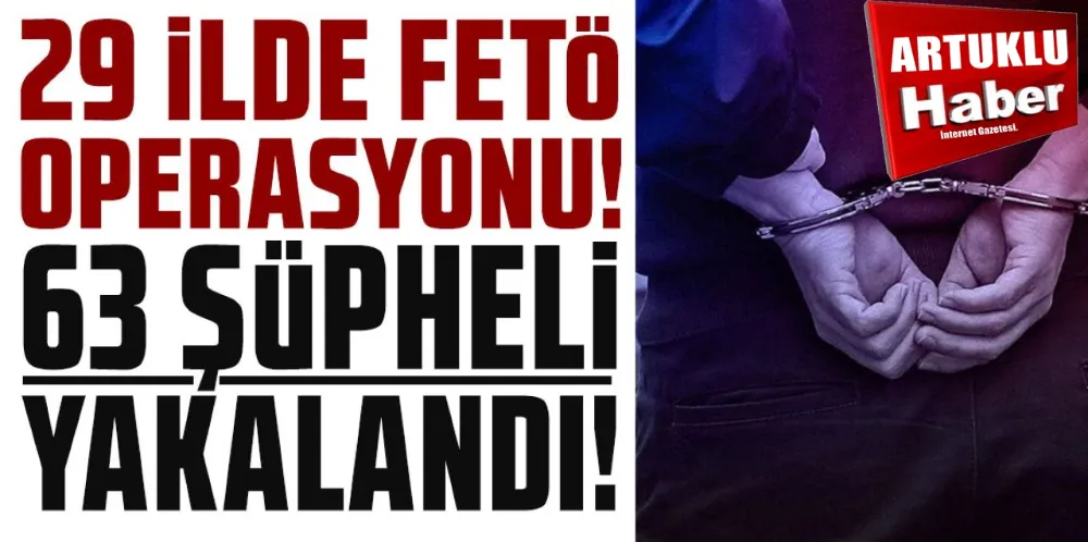 İçişleri Bakanı Ali Yerlikaya, FETÖ'ye yönelik 29 ilde Jandarma tarafından son 2 haftadır düzenlenen operasyonlarda 63 şüpheli yakalandığını açıkladı. Bakan Ali Yerlikaya açıklamasında;