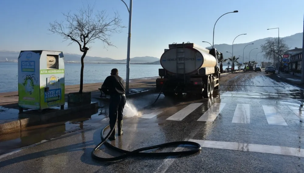 Gemlik Belediyesi Temizlik İşleri Müdürlüğü ekipleri, sahil yolunda kapsamlı bir çalışma gerçekleştirdi. Yıkama ve süpürme araçlarıyla yürütülen çalışmalar kapsamında biriken kum ve atıklar temizlenerek yol eski görünümüne kavuşturuldu.