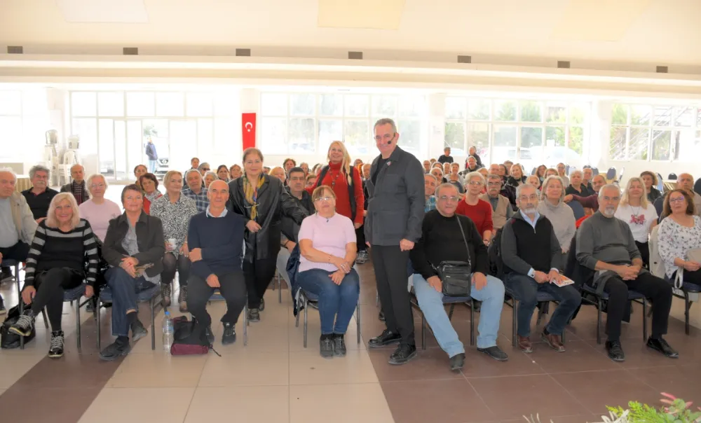 İlgenli, Seferihisar Belediyesi Etkinlik Salonunda 60 yaş ve üzerindeki yaklaşık 120 kişiye, ağız sağlığı, hijyen ve sistemik hastalıklar ilişkisi konularında ayrıntılı bilgiler verdi.