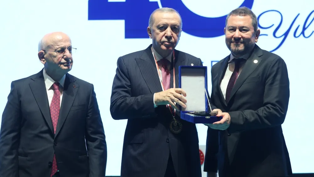 Birlik Vakfı’nın 40’ıncı kuruluş yıl dönümü töreninde, vakfa sunduğu katkılar nedeniyle İzmirli iş insanı Nazım Torbaoğlu’na plaketini Cumhurbaşkanı Recep Tayyip Erdoğan verdi.