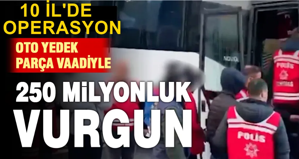 İnternet üzerinden “oto yedek parçası” satmak vaadiyle 500’den fazla vatandaşımızı yaklaşık 250 Milyon TL dolandırarak haksız kazanç sağlayan organize suç örgütüne yönelik Tekirdağ merkezli İstanbul, Ankara, İzmir, Gaziantep, Samsun, Manisa, Konya, Mersin ve Denizli’de operasyonlar düzenlendi.