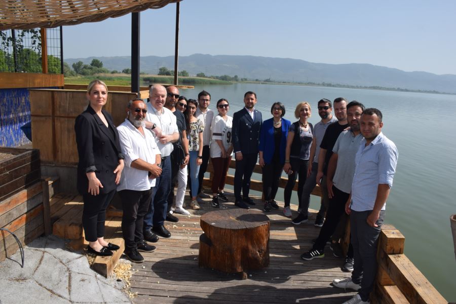 Orhangazi CHP İlçe Başkanı Ender Teke ve beraberindekiler konuşmaların ardından, İznik Gölü kıyısında hatıra fotoğrafı çektirdi.