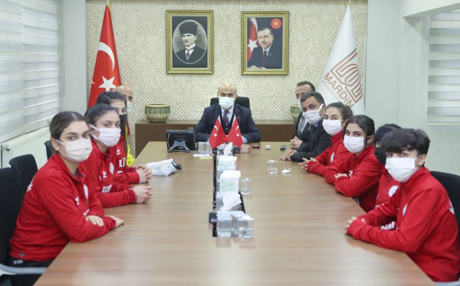 Mardin Büyükşehir Belediyesi toplantı salonunda hazır bulunan Mardin Gençlik Hizmetleri ve Spor İl Müdürü Beytullah Birlik, Kızıltepe Spor Lisesi Müdürü Mesut Kılıç, Takımın Hocası Ferhat Öztürk ve kadın sporcular Vali Demirtaş'a takım ile alakalı bilgiler verdi.