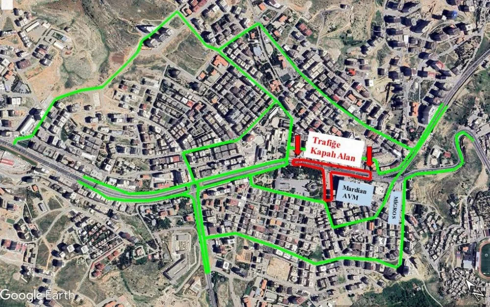 Yürütülecek çalışmalar nedeniyle, Vali Ozan Caddesi üzerindeki Mardian AVM ve 15 Temmuz Demokrasi ve Şehitler Parkı önü, kademeli olarak tek yönlü trafiğe kapatılacaktır.