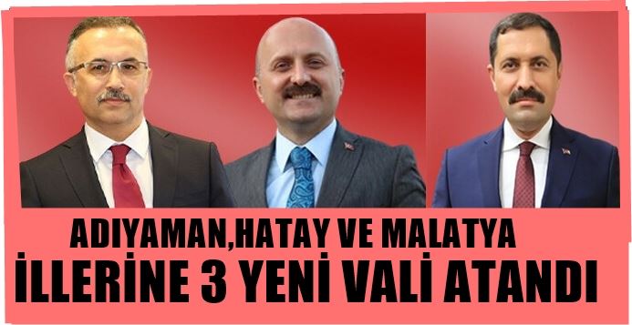 Cumhurbaşkanlığının 25.06.2023 Tarihli Resmi Gazetede yayınlanan atama Kararnamesi ile Adıyaman, Hatay ve Malatya illeri Valiliklerine yeni atama gerçekleştirildi. Cumhurbaşkanlığının Kararnamesi ile Emniyet Teşkilat Kanununun 1.Maddesi ile 3 sayılı Cumhurbaşkanlığı Kararnamesinin 2.ve 3.Maddeleri gereğince ;