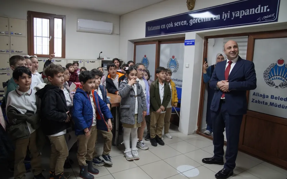 Aliağa Belediyesi Zabıta Müdürlüğü, Petro-Kimya İlkokulu 2-E sınıfı öğrencilerini misafir etti. Hayat Bilgisi dersi kapsamında “meslekler” konusunu yerinde öğrenmek amacıyla gerçekleştirilen ziyarette öğrenciler, zabıta mesleğini yakından tanıma fırsatı buldu.