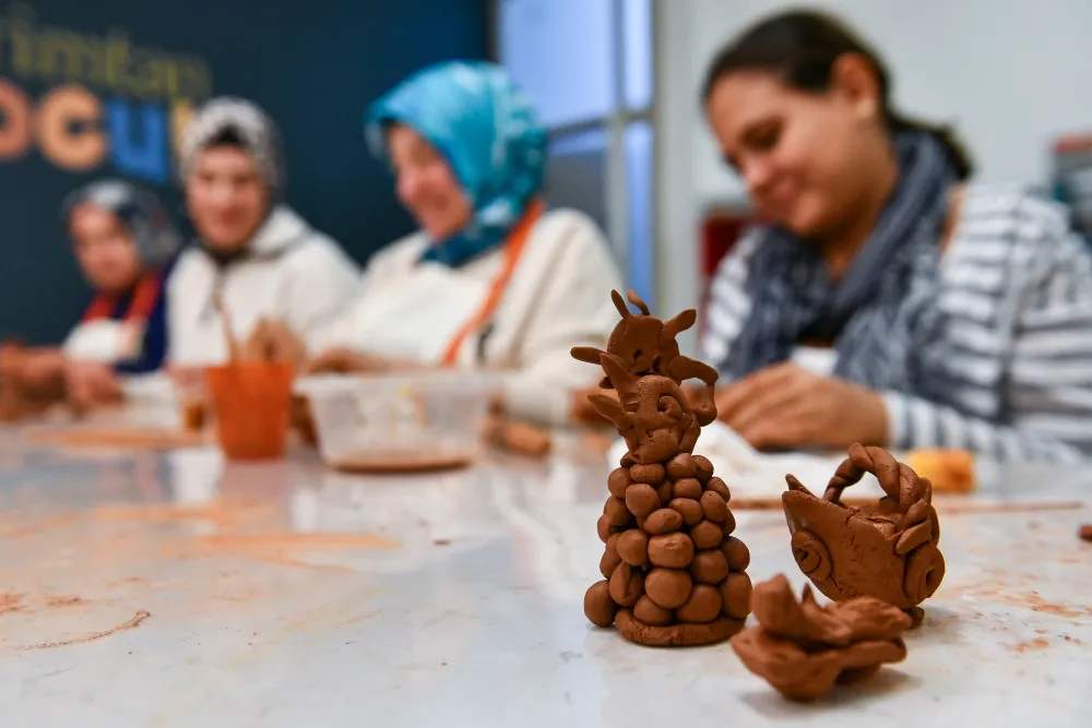 Kadın ve Aile Hizmetleri Daire Başkanlığı Kadın Danışma Merkezi ile Erimtan Arkeoloji ve Sanat Müzesi iş birliğiyle Hasanoğlan Kadınlar Lokali üyelerine yönelik “Kil ile Sanat Terapisi Atölyesi” düzenlendi.