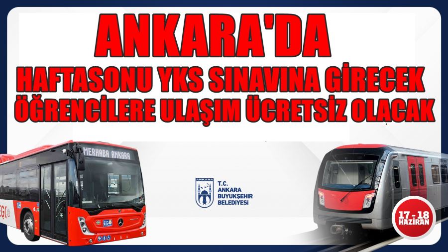Sınav giriş belgelerini göstermeleri şartıyla öğrenciler, veliler ve sınav görevlilerine EGO otobüsleri, ANKARAY ve Metro ücretsiz hizmet verecek. Öğrencilerin sınav günü bir sıkıntı yaşamaması için toplu taşıma araçlarının sefer sayıları da artırıldı.