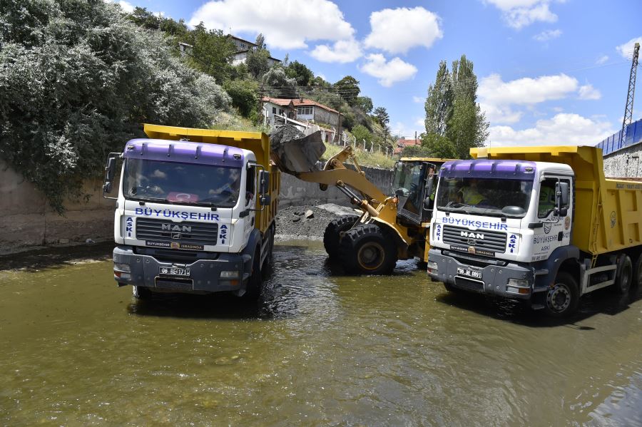 Toplum sağlığını tehdit eden atıklar için ASKİ’ye bağlı 10 personel, 2 kamyon ve 2 iş makinesi ile Baraj Mahallesi Fruko Köprü üstünde dereye atılan atıkların sürüklenerek tarihi Akköprü üzerinde yer alan Ankara Çayı’nda birikmesini önlemeye çalışıyor.