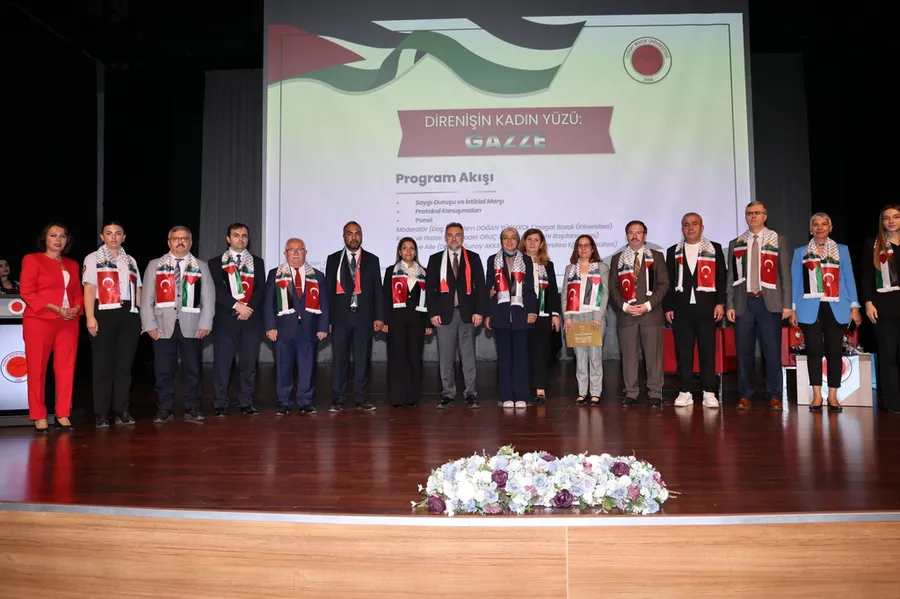 Rektör Prof. Dr. Ahmet Akkaya konuşmasında “Bugün Gazze’de yaşanan insanlık dramını, kadınların onurlu direnişini ve hakikatin sesini hep birlikte hatırlayacağız. Bu imtihan yalnızca Gazze’de ya da Filistin’de yaşayanların değil, Müslümanların ve insanlığın ortak imtihanıdır. Binlerce insanın yurdundan edilmesi ve farklı coğrafyalara göç ettirilmesi, 7 Ekim 2023 itibarıyla çok daha derin bir trajediye dönüşmüştür. Bugün o acı günün üzerinden iki yıl geçti. Kadın, çocuk, yaşlı demeden insanlar hâlâ orada direnişini sürdürüyor, açlık ve yoklukla mücadele ediyor. Bizler ise burada seyirci kalmıyoruz; derslerle, yürüyüşlerle ve boykotlarla Gazze halkının yanında olduğumuzu gösteriyoruz.” dedi.