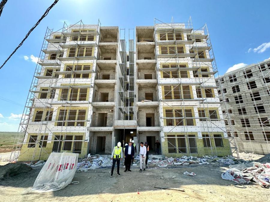 Midyat Belediye Başkanı Veysi Şahin, 2.Etap 354 Adet Midyat TOKİ Sosyal Konut alanlarında incelemelerde bulunarak şantiye şefi Sadık Kabul ve çalışma arkadaşlarından çalışmalar hakkında bilgi aldı.