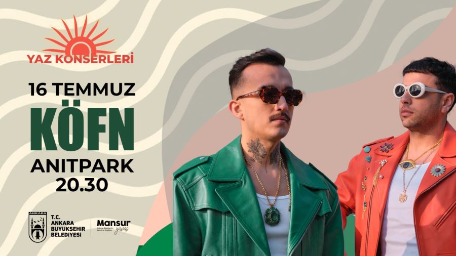 Ankara Büyükşehir Belediyesinin Başkentlileri sevdikleri sanatçılarla ücretsiz olarak buluşturduğu ‘Yaz Konserleri’ devam ediyor. Son dönemde ilgi gören KÖFN, Anıttepe’de en sevilen şarkılarını söyleyecek.