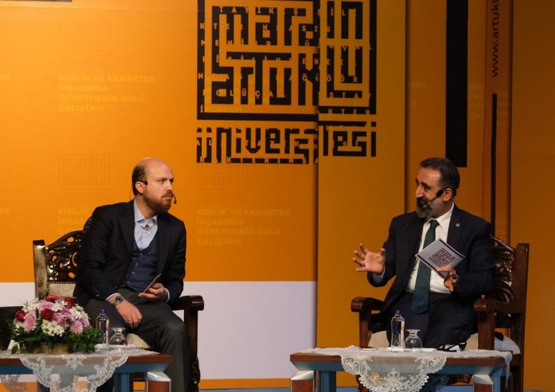 Mardin Artuklu Üniversitesi Rektörü Prof. Dr. İbrahim Özcoşar’ın daveti üzerine Mardin’e gelen Bilal Erdoğan” MAÜ Rektörlük binasında bulunan Atatürk Kültür Merkezinde “Kişilik ve Karakter İnşasında Öğretmenin Rolü” konulu çalıştayın açış paneline katıldı.