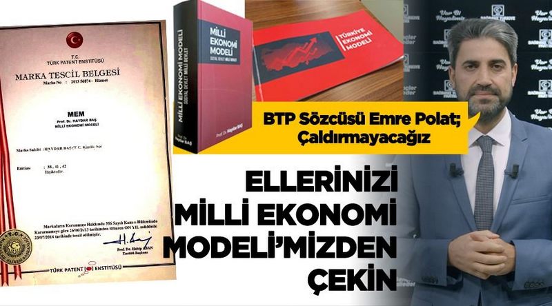 Basın toplantısı düzenleyen BTP Sözcüsü Emre Polat, “Ellerinizi Milli Ekonomi Modeli’mizden çekin! Çaldırmayacağız” dedi.