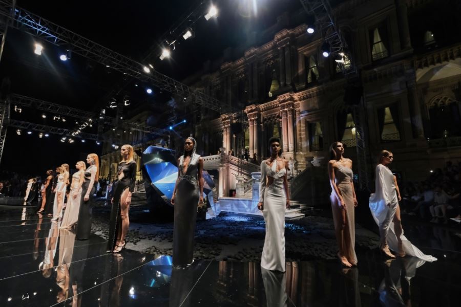 Podyumda yer alan dev pırlantalar arasında ışıldayan koleksiyonları birbirinden ünlü modeller taşıdı. Açılışı top model Tülin Şahin ile yapılan defilede Şevval Şahin , Deren Talu gibi isimler yer aldı. Kapanış top model Çağla Şikel ile gerçekleştirildi.