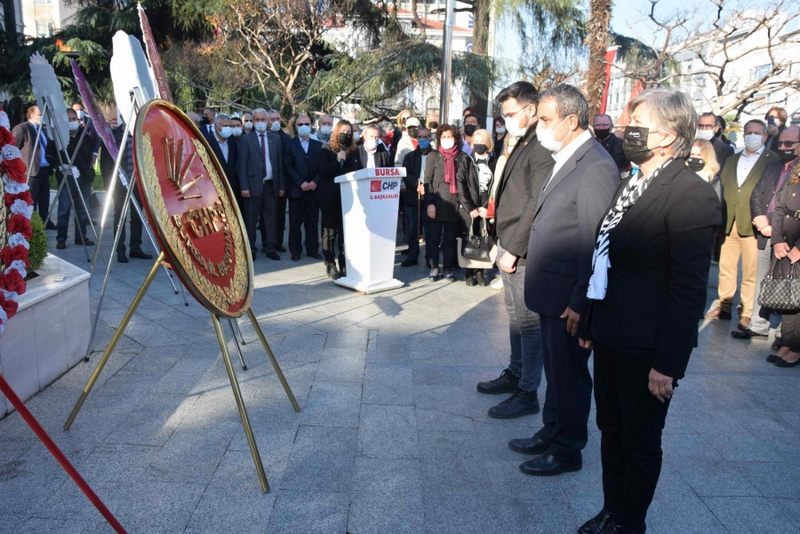İlçe başkanları, İl Gençlik ve Kadın Kolları, partililer ve yurttaşların katılımıyla düzenlenen anma töreninde konuşan CHP Bursa İl Başkanı İsmet Karaca, Türkiye Cumhuriyeti ve CHP’nin kurucusu, büyük asker ve devlet adamı Atatürk’ü anarken, onun ilke ve devrimlerine, demokrasiye, tam bağımsızlığa, insan haklarına, barış ve özgürlüğe olan inancını da tekrarlayarak şunları söyledi: