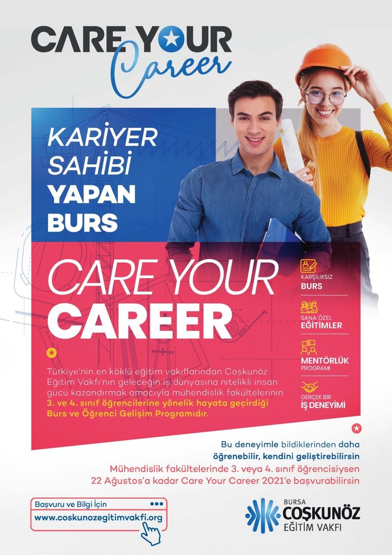 Mühendislik öğrencilerine öğrenme, kendini geliştirme, yeteneklerini ve ilgilerini hayata geçirme fırsatı sunmanın yanında parlak bir kariyer yolu da açan programa https://www.coskunozegitimvakfi.org/tr/faaliyetlerimiz/care-your-career-burs-programi linkinden başvurulabiliyor. Başvurular 22 Ağustos tarihine kadar devam edecek.