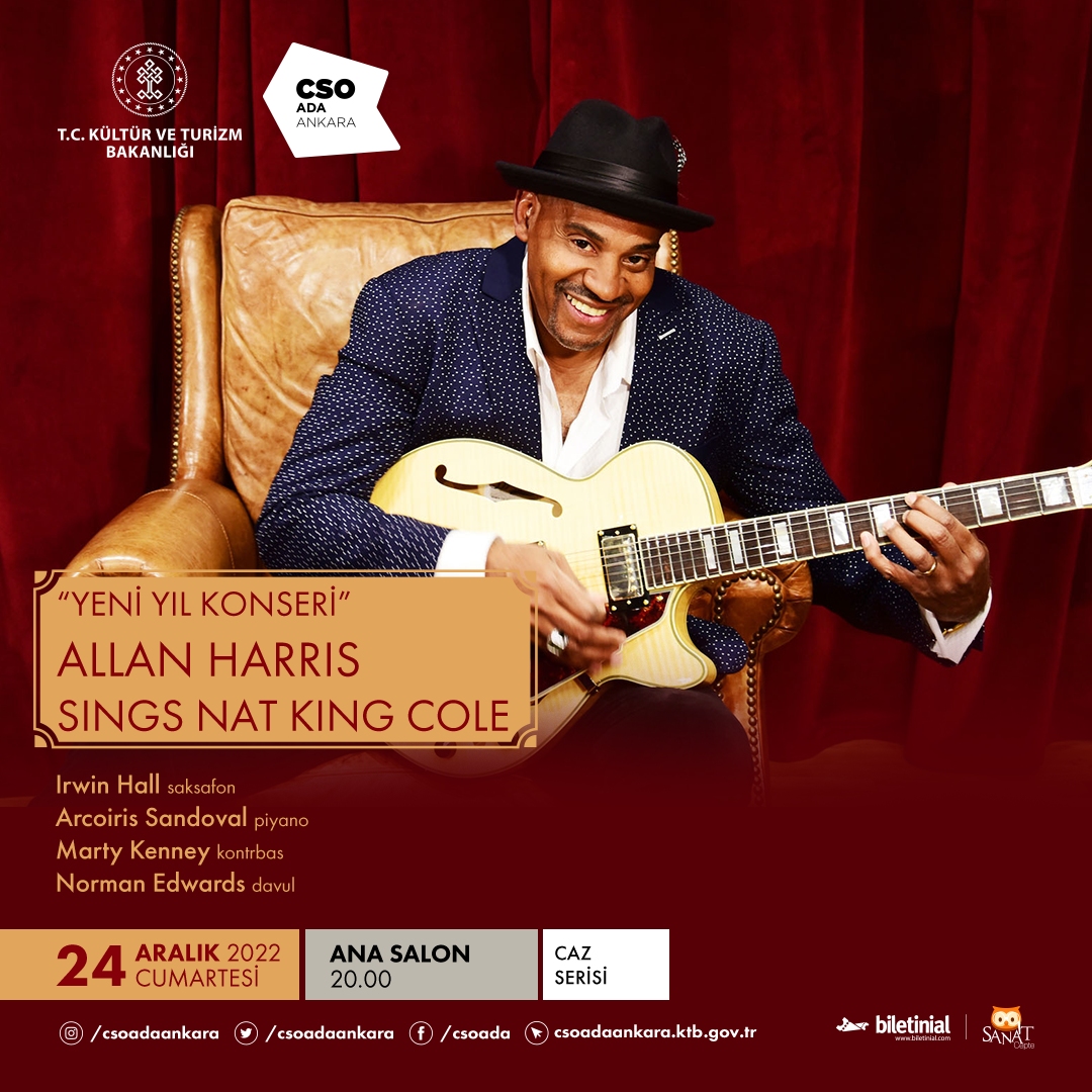CSO ADA ANKARA, caz serisi kapsamında ağırlayacağı dünyaca ünlü caz solisti, gitarist ve söz yazarı Allan Harris’in yeni yıl konseri ile 2022’ye veda ediyor. New York Times tarafından “çok-yönlü yetenek” olarak adlandırılan Allan Harris, Nat King Cole şarkılarından oluşan özel performansıyla 24 Aralık’ta CSO ADA ANKARA’da sanatseverler ile buluşacak.