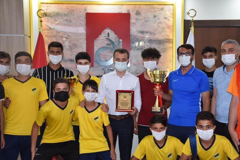 Kapadokya Junior Cup Atatürk Yaz Turnuvası’nda üçüncülük elde eden Derik Futbol Akademisi oyuncuları Derik Kaymakamı/Belediye Başkan Vekili Hicabi AYTEMÜR’ü makamında ziyaret ettiler.