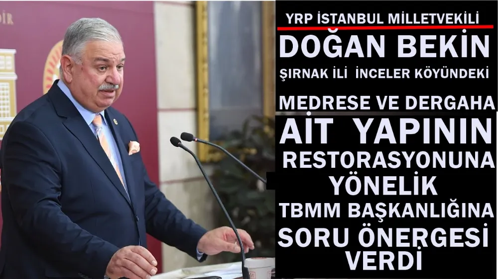 YRP Genel Başkan Yardımcısı ve İstanbul Milletvekili Doğan Bekin, Şırnak ili Uludere İlçesi İnceler (Basret) köyünde bulunan medrese ve dergâha ait yapının restorasyonuna yönelik TBMM Başkanlığına soru önergesi verdi.