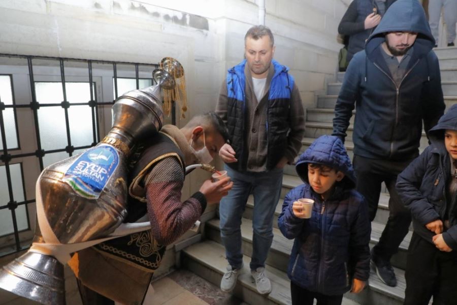 Ramazan ayının unutulmaya yüz tutmuş geleneklerinden biri olan şerbet dağıtımını yeniden hayata geçiren Eyüpsultan Belediyesi, her akşam farklı iki camide şerbet ikramında bulunuyor.