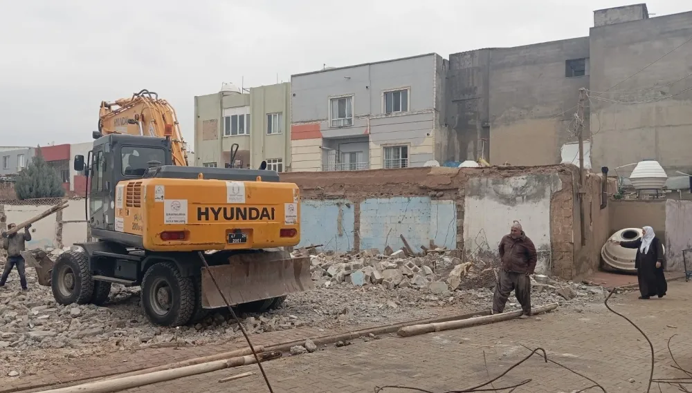 Kızıltepe Belediyesi, vatandaşların can ve mal güvenliğini riske koyan metruk bir evin yıkımı kontrollü bir şekilde yaptı.