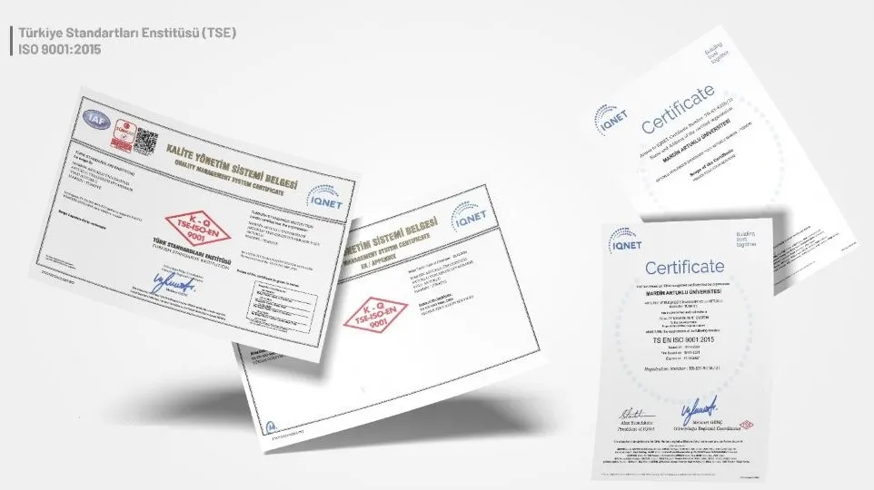 Türkiye Standartları Enstitüsü (TSE) tarafından 19-20 Kasım 2024 tarihlerinde gerçekleştirilen ISO 9001:2015 Kalite Yönetim Sistemi dış tetkik süreci sonunda Mardin Artuklu Üniversitesi Kalite Belgesini almaya hak kazandı.