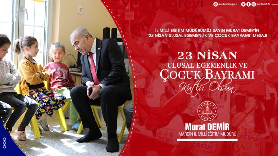 Mardin İl Milli Eğitim Müdürü Murat Demir, Türkiye Büyük Millet Meclisi'nin açılışının 103.yıl dönümü olan 23 Nisan Ulusal Egemenlik ve Çocuk Bayramı dolayısıyla yazılı mesaj yayınladı. Mardin İl Milli Eğitim Müdürü Murat Demir mesajında şunları söyledi;