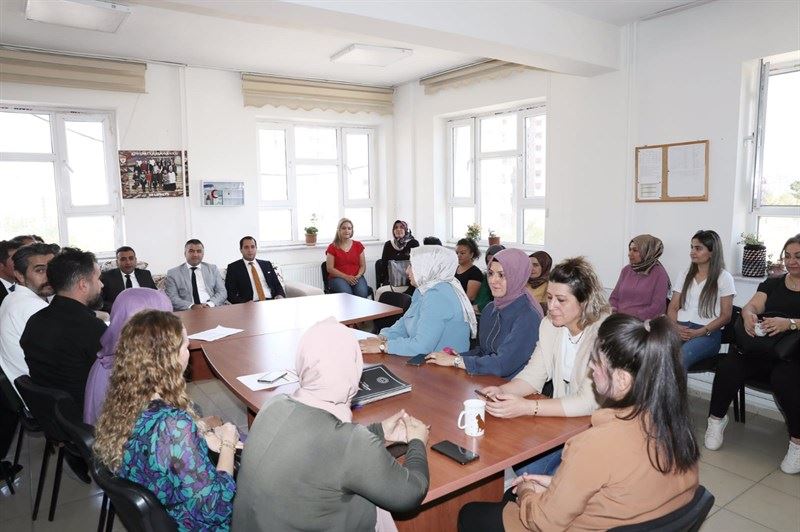Vali Vekili Tatlısöz, ilk olarak öğretmenler odasında okul idarecileri ve öğretmenlerle bir araya gelerek bir süre sohbet ederek göstermiş oldukları fedakâr çalışmalar için teşekkür etti.