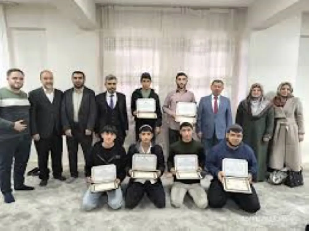Mardin Artuklu'da bulunan Kur'an kurslarında hafızlık eğitimini tamamlayan öğrencilere "Hafızlık Belgesi" Mardin İl Müftüsü Dr. Enver Türkmen, Mardin İl Müftü Yardımcısı Zübeyde Zengin ve Artuklu İlçe Müftüsü Abdullah Işık tarafından verildi.