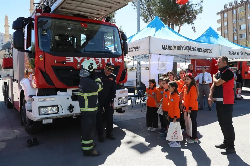 Etkinlik alanına gelen öğrencilere ise itfaiyeciliğin önemi hakkında bilgilendirme yapıldı ve yangın söndürme araçları tanıtıldı. Daha sonra öğrencilere itfaiye çocuk kitabı, boyama kalemi, puzzle, itfaiye el broşürleri, 112 acil durum kılavuzu ve üzerinde "112 Mardin İtfaiyesi" yazılı kalem hediye edildi.