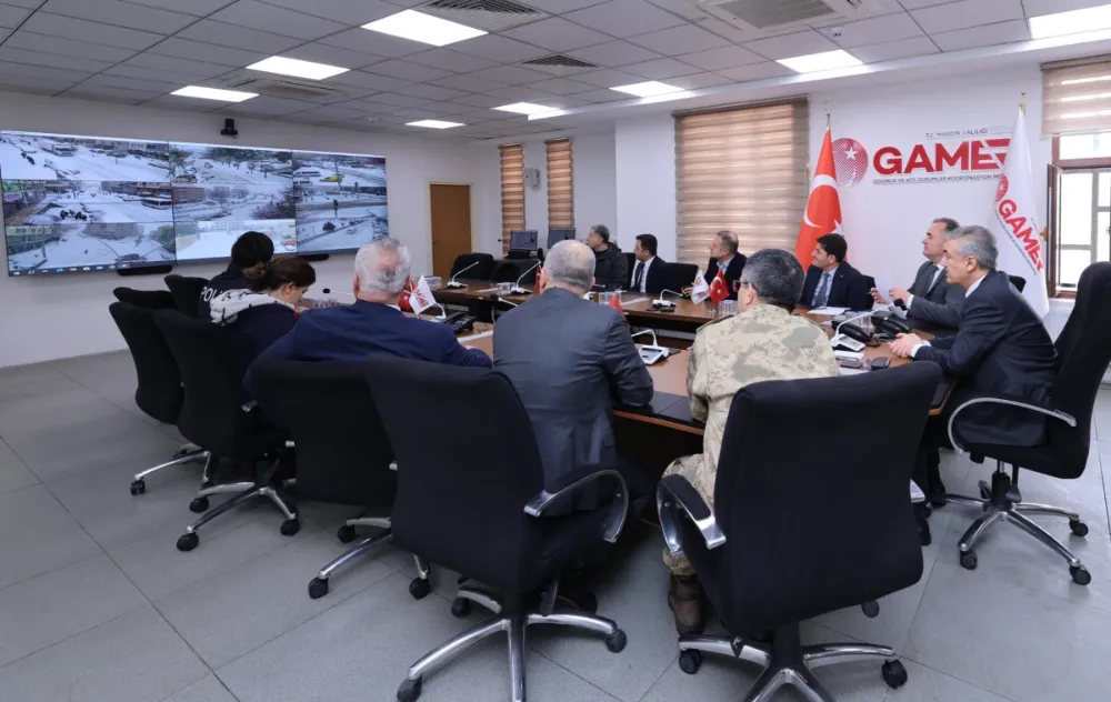 Mardin Valisi Tuncay Akkoyun ilgili kurum amirleri ve daire başkanlarının katılımıyla GAMER Koordinasyon Merkezinde devam eden karla mücadele çalışmalarını yerinde inceledi.