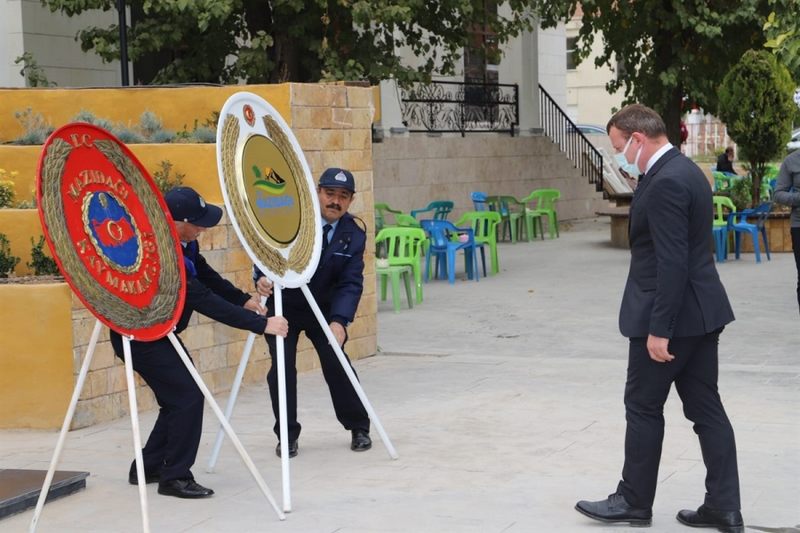 Mazıdağı ilçe Kaymakamı ve Belediye Başkan Vekili Mustafa Görmüş Atatürk Anıtı' na Kaymakamlık ve Belediye adına çelenkler sundu.Saygı duruşunda bulunulması ve İstiklal Marşımızın okunmasıyla düzenlenen tören sona erdi