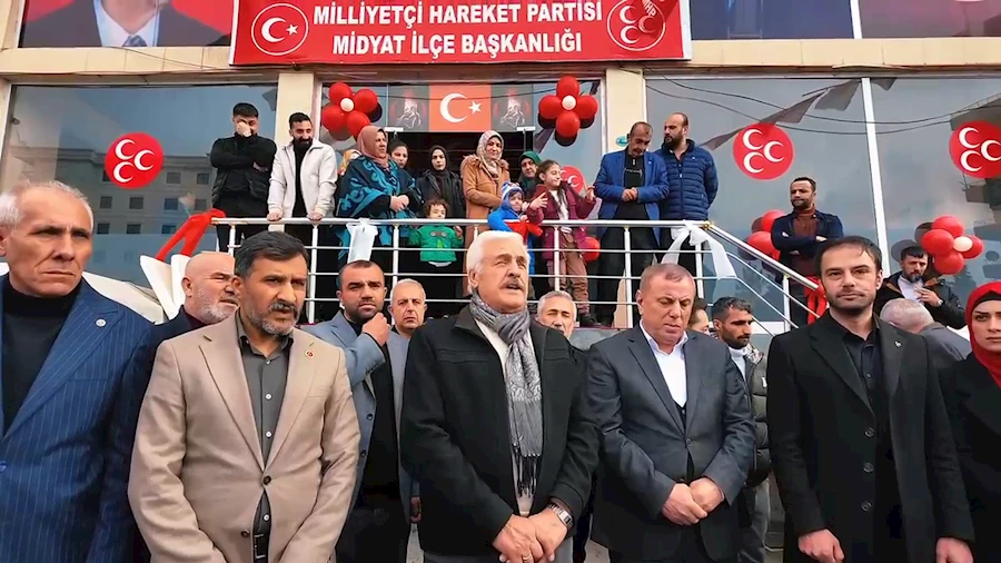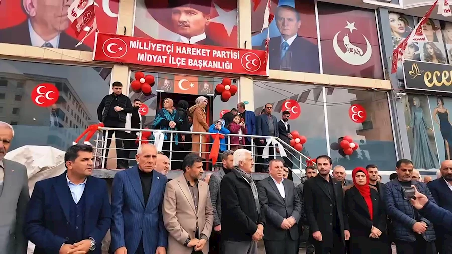 Mardin'in Midyat ilçesi MHP ilçe yeni hizmet binası düzenlenen törenle hizmete açıldı.Açılış törenine MHP Mardin İl Başkanı Ferhan Bozkuş,MHP Midyat ilçe Başkanı A. Kadir Akyol ve Midyat Belediye Başkanı Veysi Şahin katıldı.
