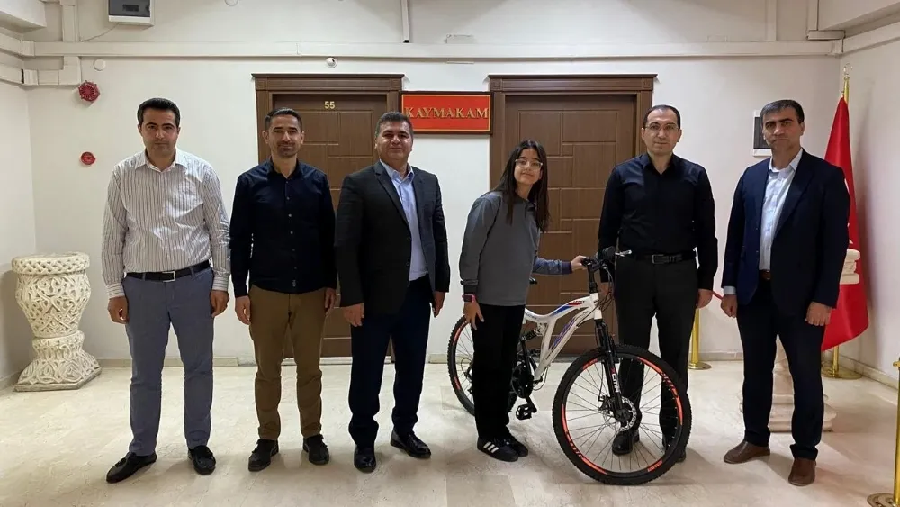 Midyat Kaymakamı Ömer Faruk Özdemir, 2024 Bursluluk Sınavında 500 tam puan alarak Türkiye Şampiyonu olan Proje Anadolu İmam Hatip Lisesi öğrencisi Hamdiye Zeynep Tunç'u bisikletle ödüllendirdi.