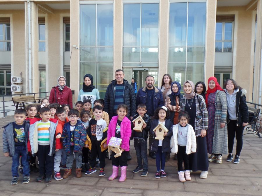 Artuklu Mehmet Nihat Mungan İlkokulu Anasınıfı öğrencileri Sağlık Hizmetleri Meslek Yüksek Okulu Çocuk Gelişimi Programı öğrencileri ile birlikte hazırladıkları kuş yuvalarını,Artuklu Üniversitesi Kampüsünde ki ağaçlara yerleştirdiler.