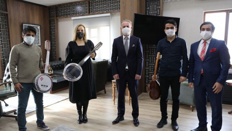 Mardin İl Milli Eğitim Müdürü Şehmus SÜMER, ziyarete gelen Müzik Öğretmenlerine öğrencilerine verdikleri müzik eğitimlerinde kullanmak üzere saz ve cümbüş hediye etti.
