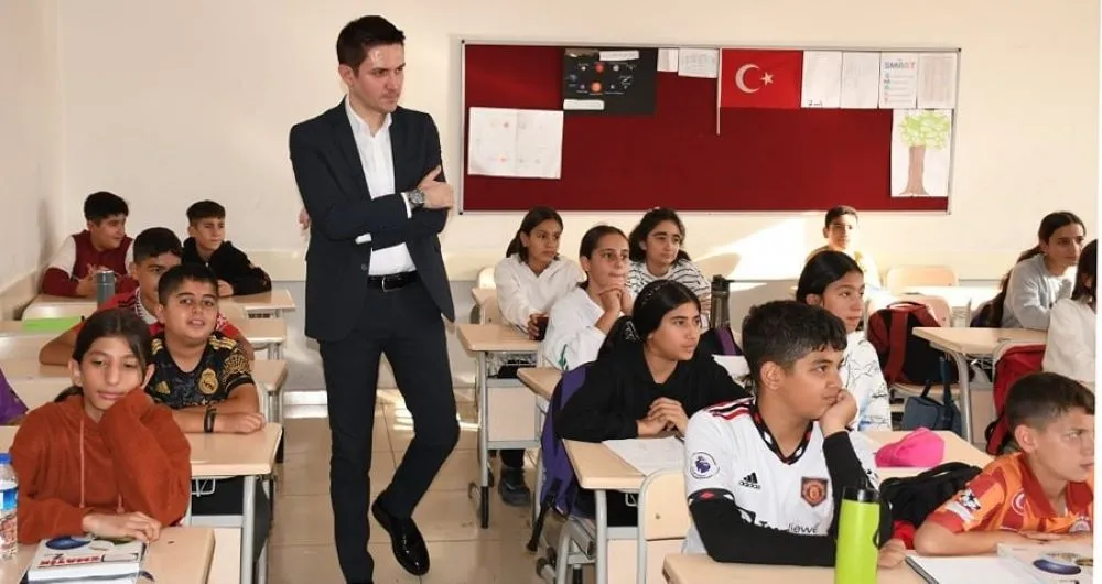 Mardin'in Nusaybin ilçesinde Kaymakam Evren ÇAKIR, Nusaybin Ortaokulu'nu ziyaret ederek öğretmenler ve öğrenciler ile bir araya geldi.