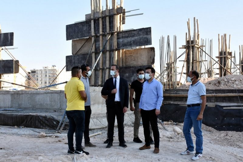 Burada yapımı devam eden Yarı Olimpik Kapalı Yüzme Havuzu inşaatında incelemelerde bulunan Yalçın, çalışmalar hakkında görevlilerden bilgi aldı.