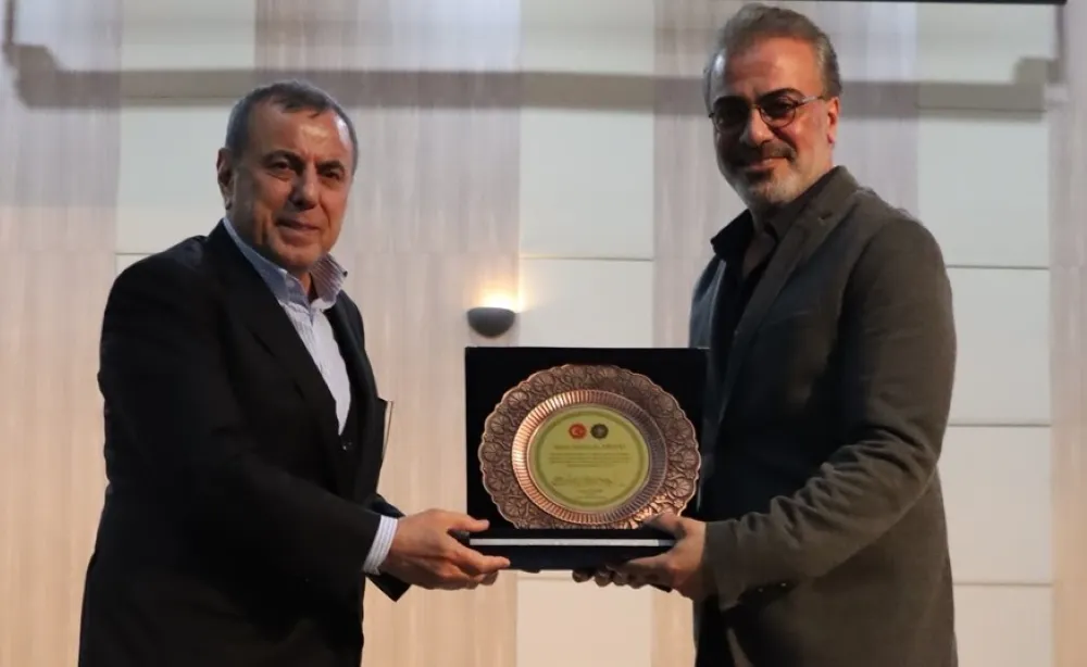 Belediye Başkanı Veysi Şahin, ilçenin tanıtımına katkı sağladığı ve gecenin anısına Sermiyan Midyat’ta plaket takdim etti.