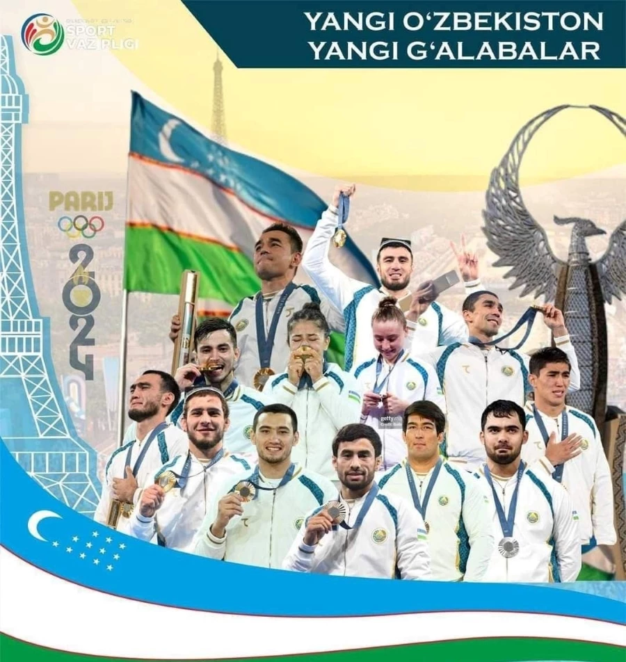 Özbekistan, Paris’te düzenlenen 33. Yaz Olimpiyat Oyunları’na çeşitli branşlarda ilk kez katılarak önemli bir başarıya imza attı. 86 sporcusuyla farklı spor dallarında yarışan Özbekistan, 8 altın, 2 gümüş ve 3 bronz madalya kazanarak toplam 13 kez kürsüde yer aldı. Bu etkileyici başarılar sonucunda Özbekistan’ın milli marşı Paris’te 8 kez okundu. Özbek sporcular, 2024 Paris Olimpiyatları’nda ülke spor tarihine önemli bir başarı ekleyerek boksta 5, judo, serbest güreş ve tekvandoda ise 1’er altın madalya kazandılar. Ayrıca, atletizm ve tekvandoda 1’er gümüş, judo ve serbest güreşte ise toplam 3 bronz madalya elde ederek, tarihlerinin en başarılı olimpiyat performansını sergilediler. Bu başarı, Özbekistan milli takımını 206 ülke içerisinde dünya sıralamasında 13’üncü, Asya ülkeleri arasında 4’üncü, Türk ülkeleri arasında 1’inci sıraya taşımıştır. Özbek sporcular, kazandıkları başarılarla dünya spor camiasının radarının Özbekistan’a çevrilmesini sağlamışlardır. Ülkeleri için milyar dolar harcanarak yapılamayacak tanıtımı ve kazanılamayacak sempatiyi, Özbek sporcular kazandıkları madalyalarla ücretsiz bir şekilde başarmıştır.