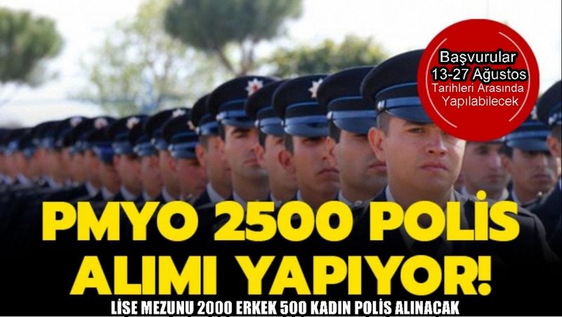 Emniyet Genel Müdürlüğünden yapılan açıklamaya göre, Polis Akademisi Başkanlığına bağlı PMYO'lara 2 bin'i erkek olmak üzere 2 bin 500 polis memuru adayı alımı yapılacak.