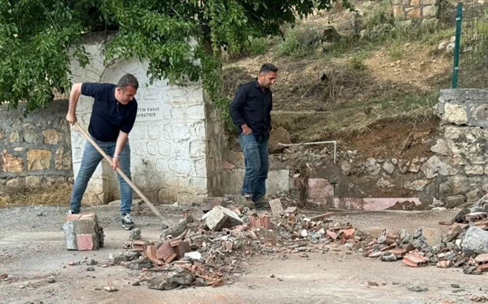 Mardin'in Savur ilçesine bağlı Başkavak Mahallesinde bulunan Tarihi Çamaşırhane restorasyon çalışmasını yerinde inceleyen Savur Belediye Başkanı Av. Engin Uğur HAMİDİ, Çalışmaya katkı sağlamak üzere kendi de eline kürek salladı.