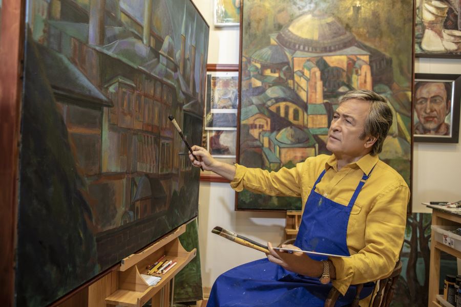 Mimari ile resmi tuvalde buluşturan sanatçı, mimari mirasımız olan, yüzyıllara meydan okuyan görkemli yapıları; yüce ruhları, çağlarını yansıtan ve nefes kesen duruşlarıyla tuvaline yansıtıyor.